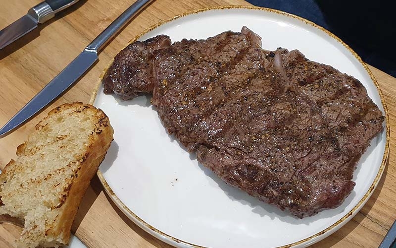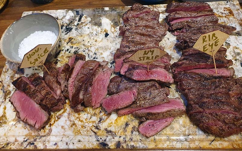 Doch dann kamen schon die Fleischplatten auf den Tisch: drei unterschiedliche Stücke vom Rind wie ihr am Foto erkennen könnt – alles hervorragend und so „rare“ wie ich es liebe, gut gewürzt und butterzart.