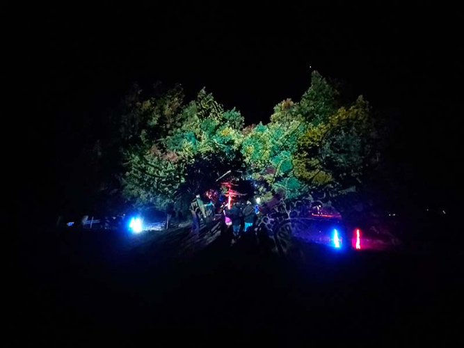 Immer wieder leuchtet auch der Mond mystisch durch die Bäume, die durch die unterschiedlich, ständig wechselnden Farben beleuchtet werden und dadurch eine magische Atmosphäre ausströmen.