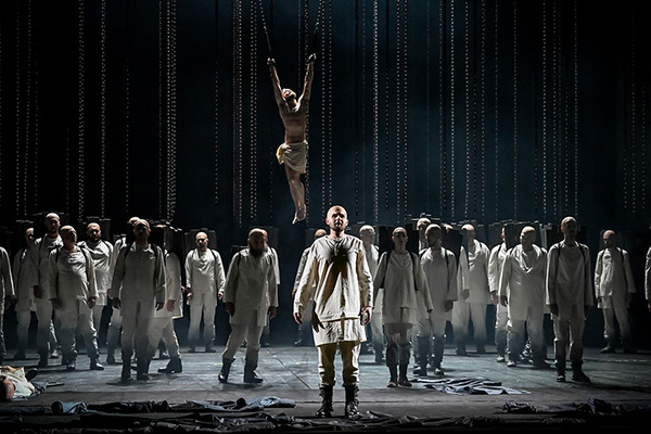 In Wirklichkeit aber hängt ein Mensch angekettet an zwei Seilen in luftiger Höhe – meine Assoziation mit Jesus ist sofort vorhanden und dieses Sinnbild zieht sich für mich durch die ganze Oper und auch durch die Glagolitische Messe. Es transportiert für mich auch den Gedanken, den Janáček gleich am Beginn der Partitur des Totenhauses vermerkte: In jeder Kreatur ein göttlicher Funke!