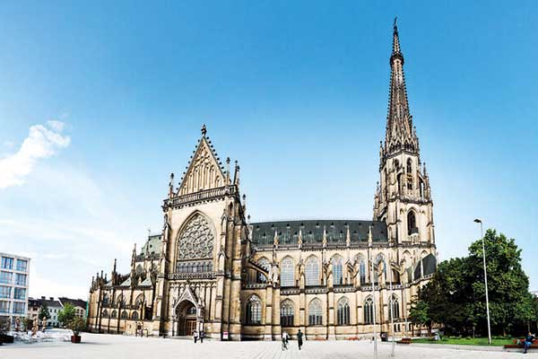 Der Dom beeindruckt mit seinen 142 Fenstern und 54 Säulen, allein der Turmbau dauert 15 Jahre, insgesamt beträgt die Bauzeit 62 Jahre. Zu seiner Zeit ist das Projekt der größte Dombau in ganz Europa. Nach Vinzenz Statz, der 40 Jahre lang bis zu seinem Tod die Arbeiten leitet, gibt es noch drei weitere Baumeister: Otto Schirmer, Franz Statz und Matthäus Schlager.