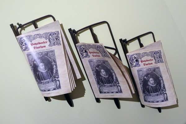 In der Kundschaftergalerie kann man mehr über die Kundschafter des Weines erfahren, die ja auch im Poysdorfer Wappen zu sehen sind. Weinkundschafter sind bereits im Alten Testament erwähnt. Moses sandte Josua und Kaleb aus, um das „Gelobte Land“ zu erkunden: „Dort schnitten sie eine Rebe mit einer Weintraube ab und trugen sie zu zweit auf einer Stange.“