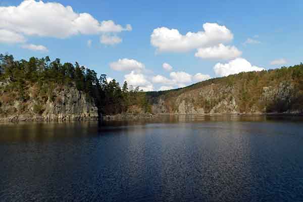 Der Stausee hat eine Länge von 68 km und reicht 22 km in die Täler der Otava, der Lomnice und der Skalice hinein. Die Gegend rund um den Stausee ist wunderschön und lädt zum Campen, Radfahren, Joggen, Wandern und Nordic Walken ein. Aber auch die Wassersportler finden hier ihre Erholung: Angler haben hier schon den einen oder anderen Fisch fürs Abendessen herausgeholt. Der See gilt als sehr fischreich, besonders Karpfen, Zander und Wels erfreuen den Anglerfreund. Auch Taucher lieben den See, immerhin kann man in 60 Meter Tiefe nach einer Kirche der ehemaligen Gemeinde Těchnice tauchen.