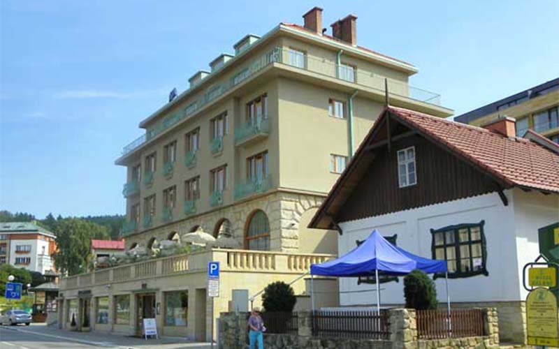 Weiter geht es in die ehemaligen Wappenkammer, in der die Fahnen und Wappen von fast 300 Ortschaften präsentiert werden. Hier findet man alte Trachten und Fotografien, alte Postkarten und Karten, die einen Eindruck über das Leben von früher geben. Nachdem in vergangenen Zeiten in der Stadt viele Deutsche lebten, können wir auch vieles an den Exponaten lesen.