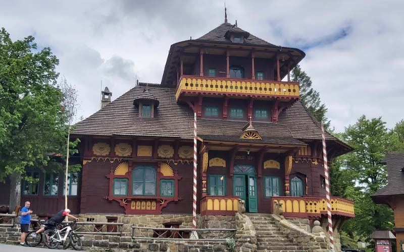 Bei unserem Besuch steht natürlich das Bierbrauen und der Hopfen im Fokus. Gleich bei der Ankunft in die Stadt fällt uns zwischen zwei schönen alten Häusern ein hoher Glasturm auf mit komischen Streben am Dach. Dazu gibt es eine Legende in der Stadt, die ich euch hier schnell erzählen will: